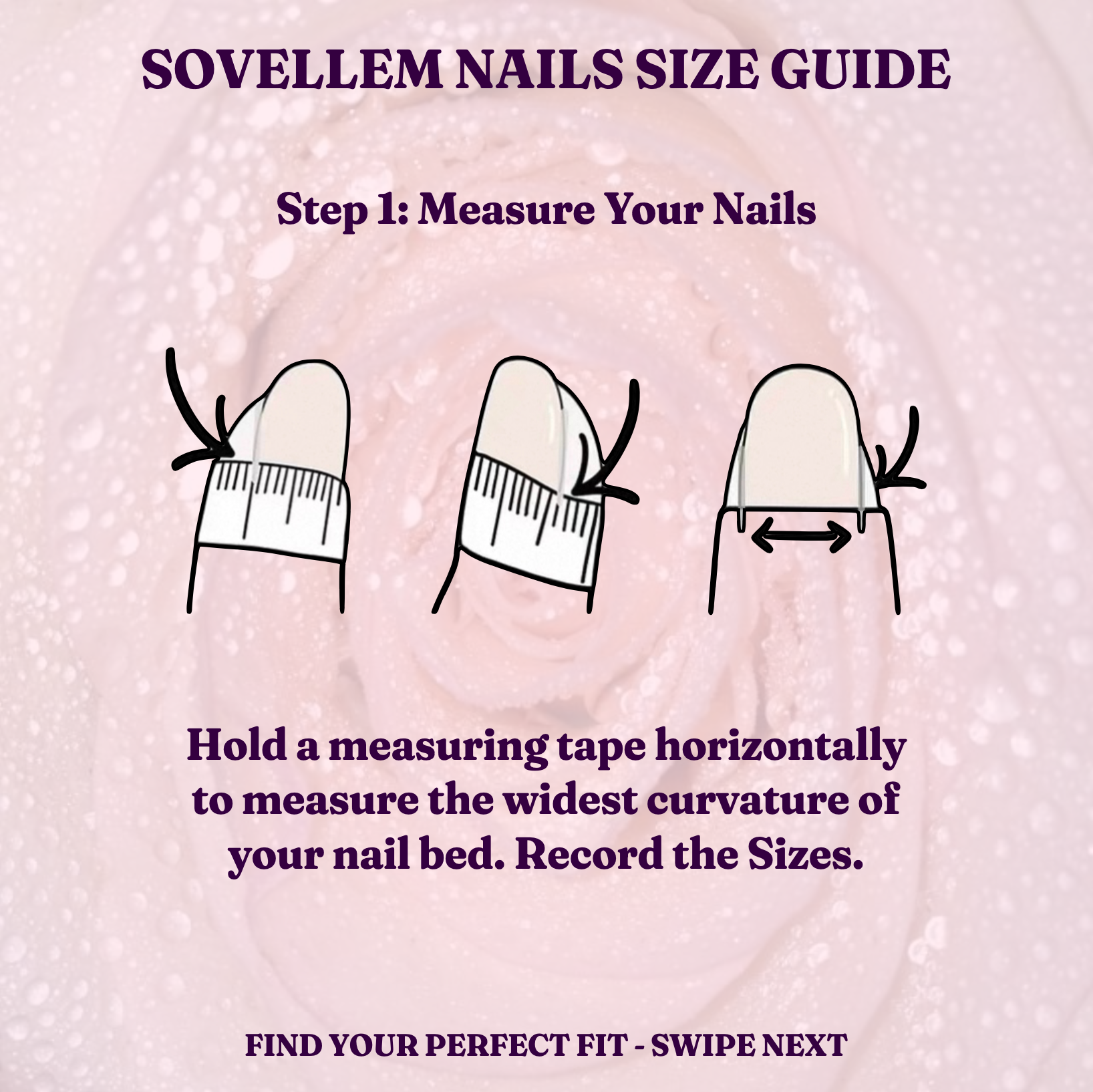 Slide the Sovellem nail slightly under your cuticle for a seamless, salon-perfect look. Press down firmly for at least 30 seconds — making sure the entire surface is covered evenly.