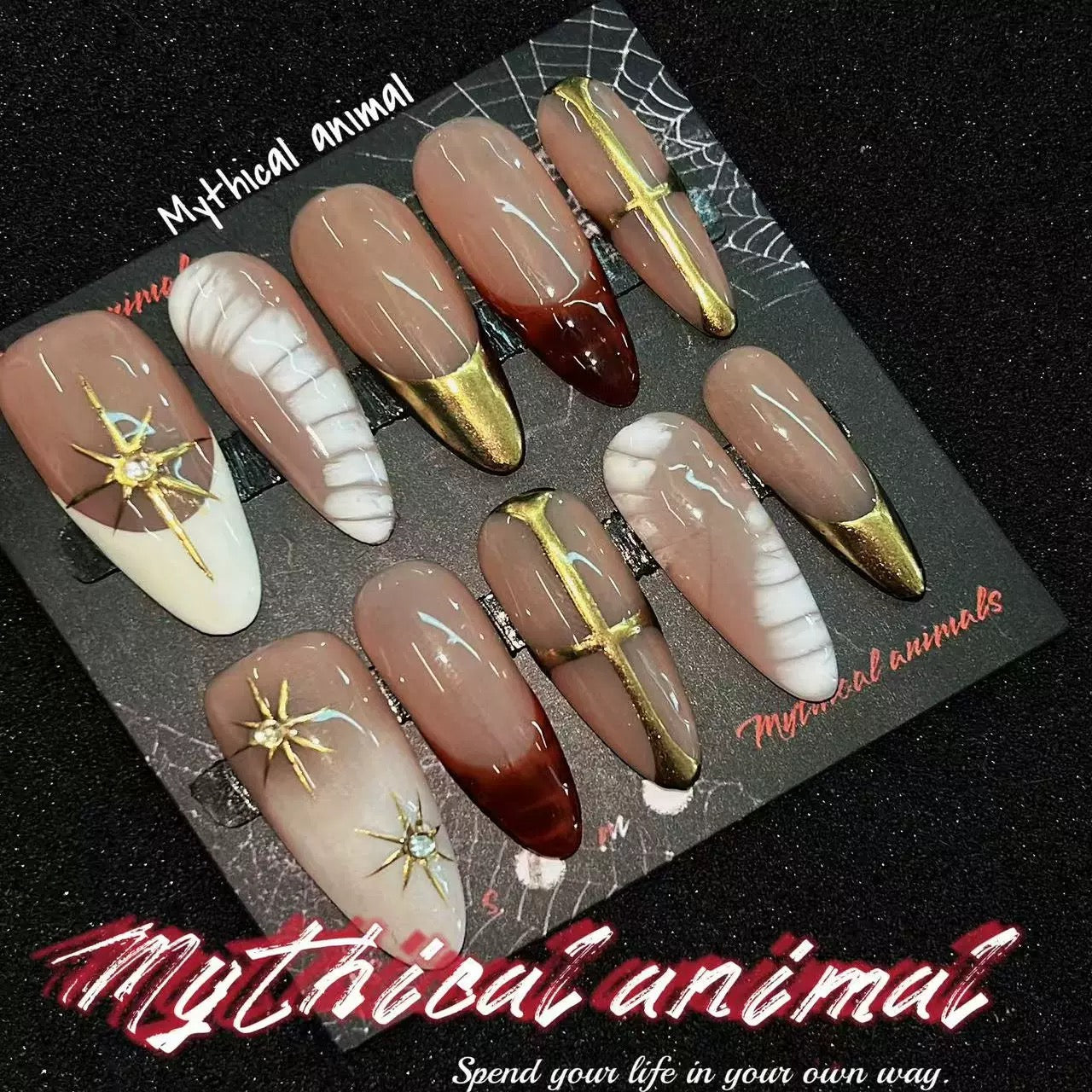 Gently push back your cuticles. Choose the nail that fits each finger best, and lay them out in order for an effortless flow.